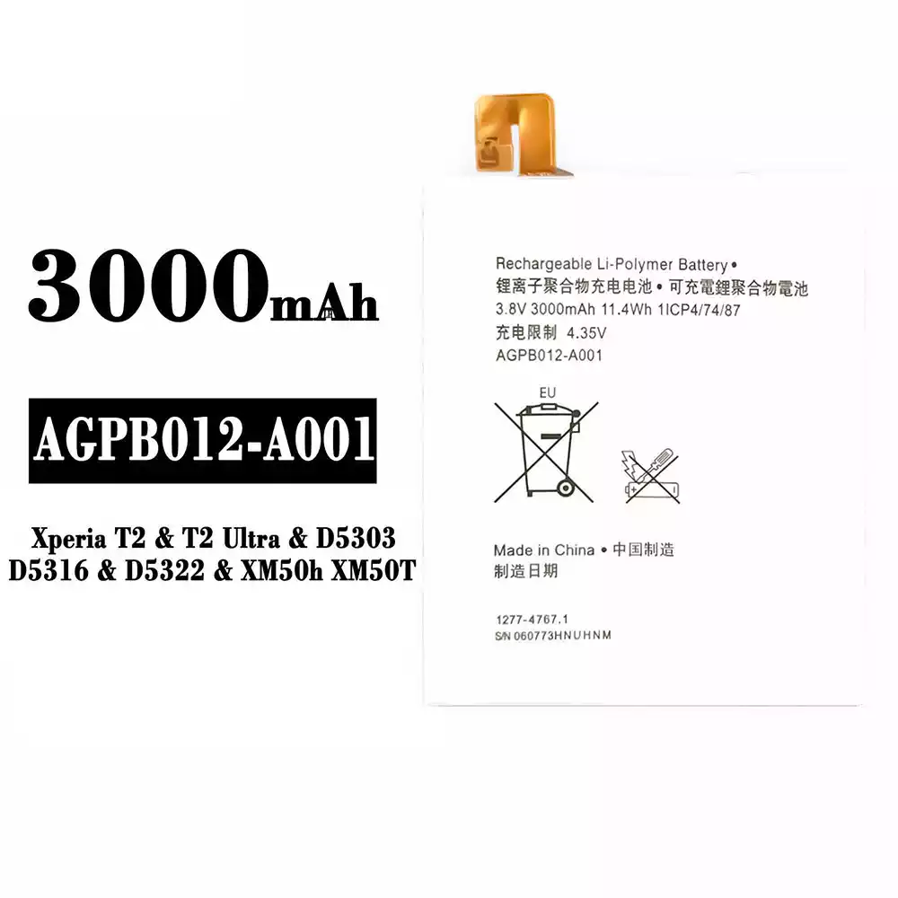 Battery AGPB012-A001 for Sony Xperia T2 / T2 Ultra / D5303 / D5316 / D5322 / XM50h / XM50T