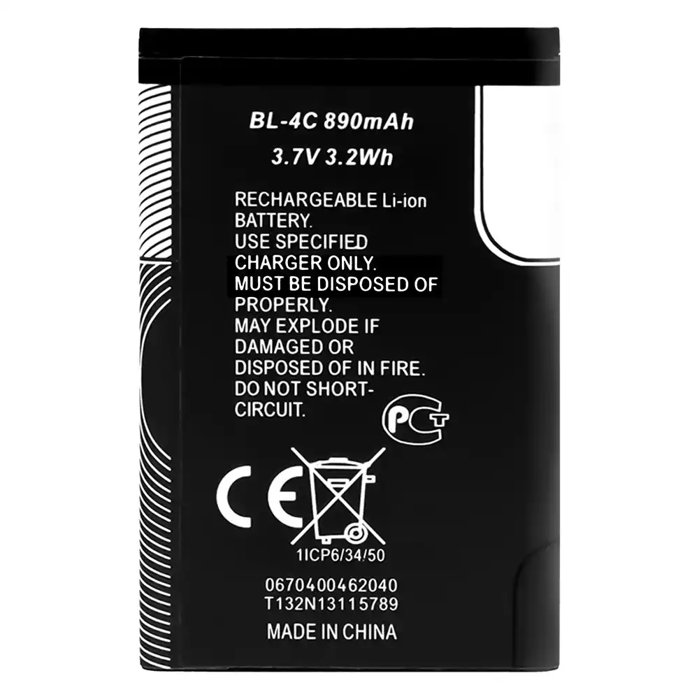 Battery BL-4C for Nokia 6260 / 6300 / 6131 / 3500c / C2-05 / 6700s / 7610 / 6101 / 6125 / 5100 /6170 / 6100 / 6102 / 7270 / 6103 / 7200 / X2-00 / 6133 / 6136 / 6301 /6300i / 7205 cdma