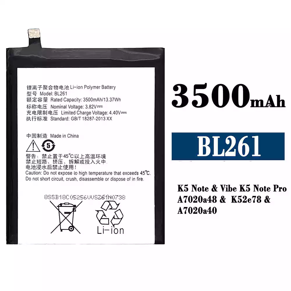Battery BL261 for Lenovo K5 Note / Vibe K5 Note Pro / A7020a48 / K52e78 / A7020a40