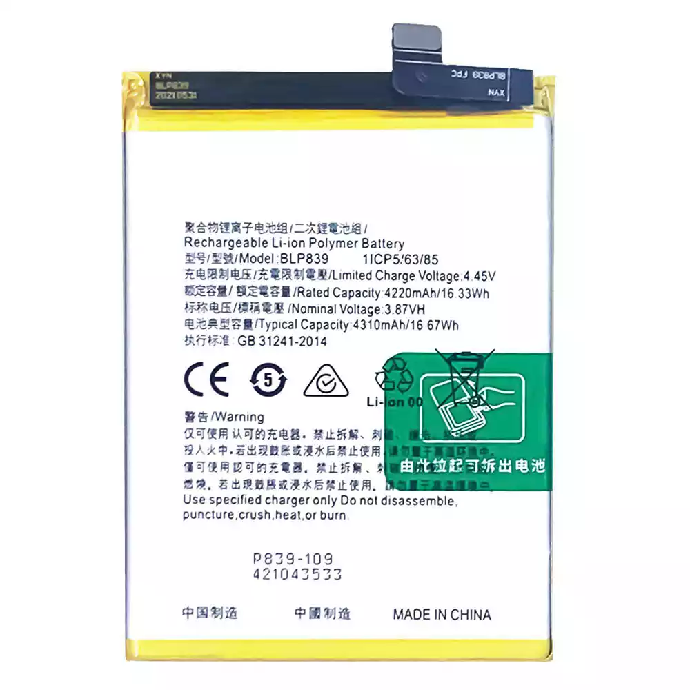 Battery BLP839 for OPPO A95 5G / A94 5G / Reno 5Z 5G / Reno 6Z / PELM00