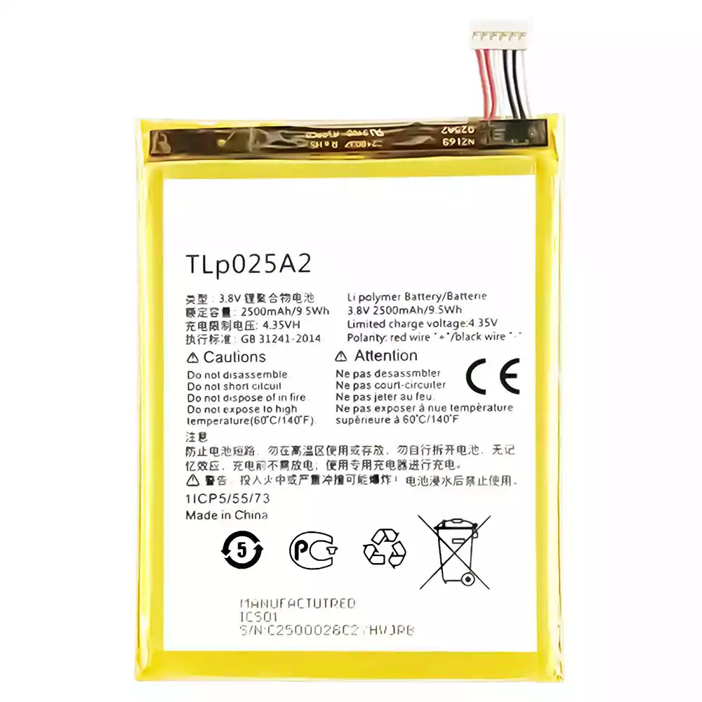 Battery TLp025A2 for Alcatel Pop2 5.0 / Pop2 5.0 Premium Idol X+ / One Touch Idol X Plus / One Touch Scribe Easy / Pop C9 / One Touch Scribe HD / One Touch Scribe X
