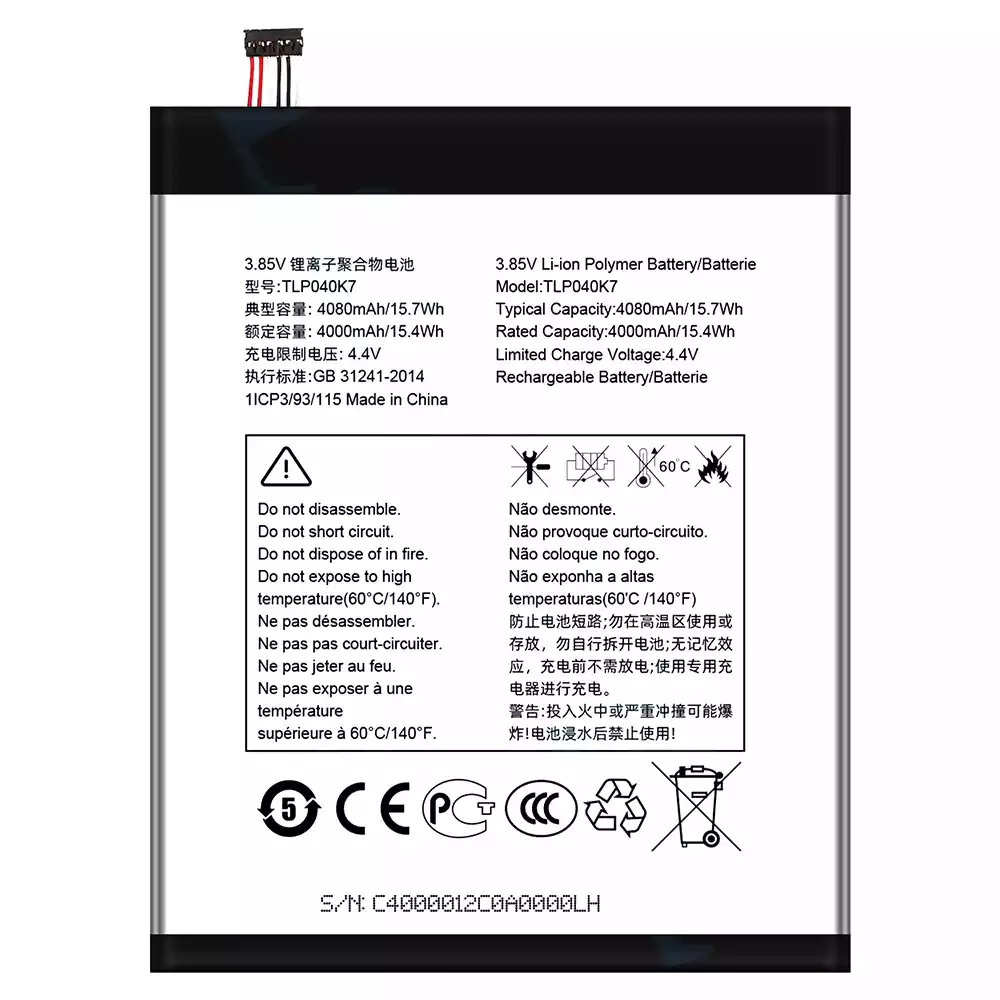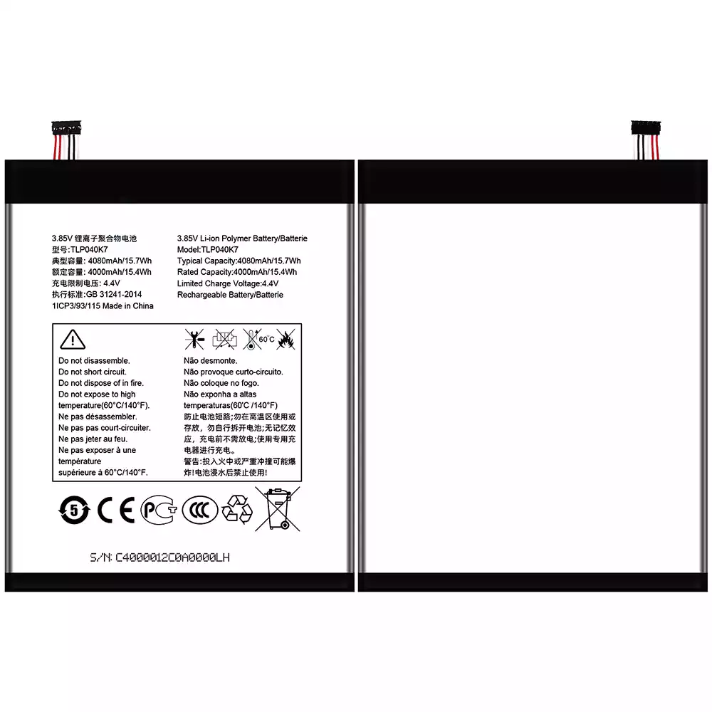 Battery TLP040K7 for Alcatel A30 Tablet 4G LTE 9024W